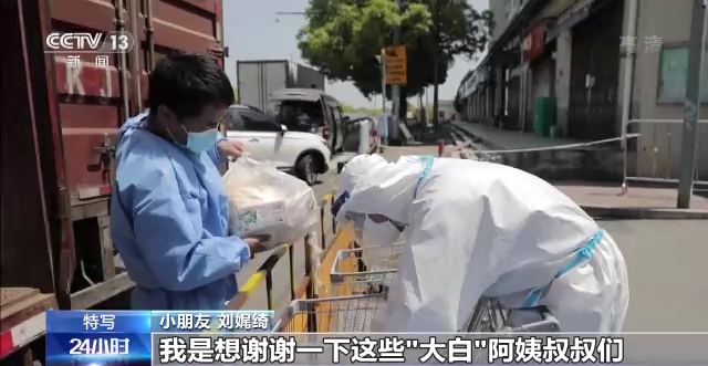 小朋友刘娓绮:我的爸爸妈妈有的时候也会去做“大白”,我想谢谢这些“大白”阿姨叔叔们,因为他们一直从晚上忙到了早上,特别辛苦。也要谢谢从安徽等很多地方的医生过来帮助我们上海的人。