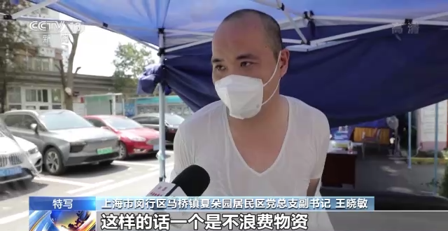 上海市闵行区马桥镇夏朵园居民区党总支副书记 王晓敏:因为今天天气比较热,其实我们很多的志愿者每天都是这样的。我们每天都是穿上“大白”,最起码要坚持5到6个小时以上,这样的话一个是不浪费物资。第二个,我们也不敢喝水,不敢上厕所,只能是咬牙坚持着,每天都是这样。