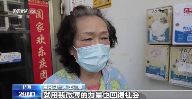 夏朵园居民 王桂英:前段时间我就一直出来做志愿者,居委会他们对我太好了,就用我微薄的力量也回馈社会,做点好事。