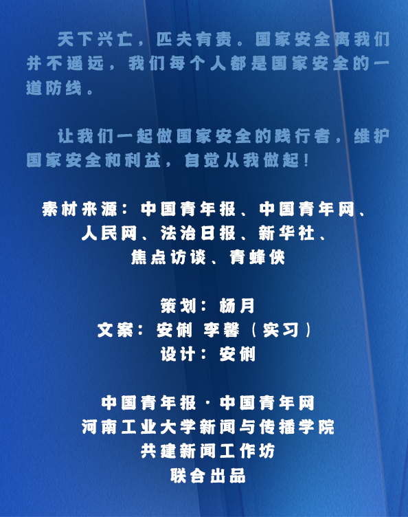 今年的4月15日,是第七个全民国家安全教育日,今年的宣传主题为:“树牢总体国家安全观,感悟新时代国家安全成就,为迎接党的二十大胜利召开营造良好氛围”。