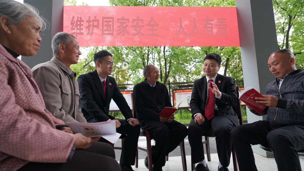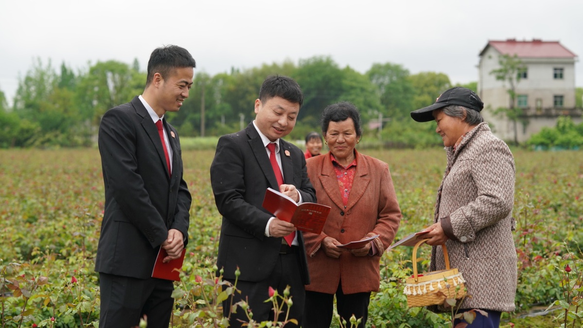 为迎接4月15日国家安全教育日的到来,4月13日,一场别开生面的国家安全教育日宣讲在鹰潭市余江区平定乡蓝田村举行。主讲人余江法院法官马俊峰走在玫瑰花田里,笑着向一群在田间劳作的村民打招呼,一阵阵浓郁的花香拂过。