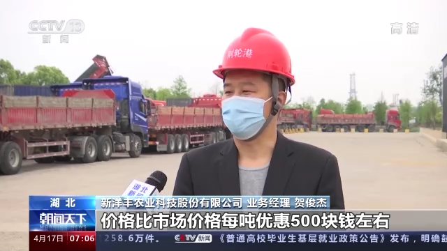 新洋丰农业科技股份有限公司业务经理 贺俊杰:价格比市场价格每吨优惠500块钱左右,让利给农户,满足他们的春耕需求。