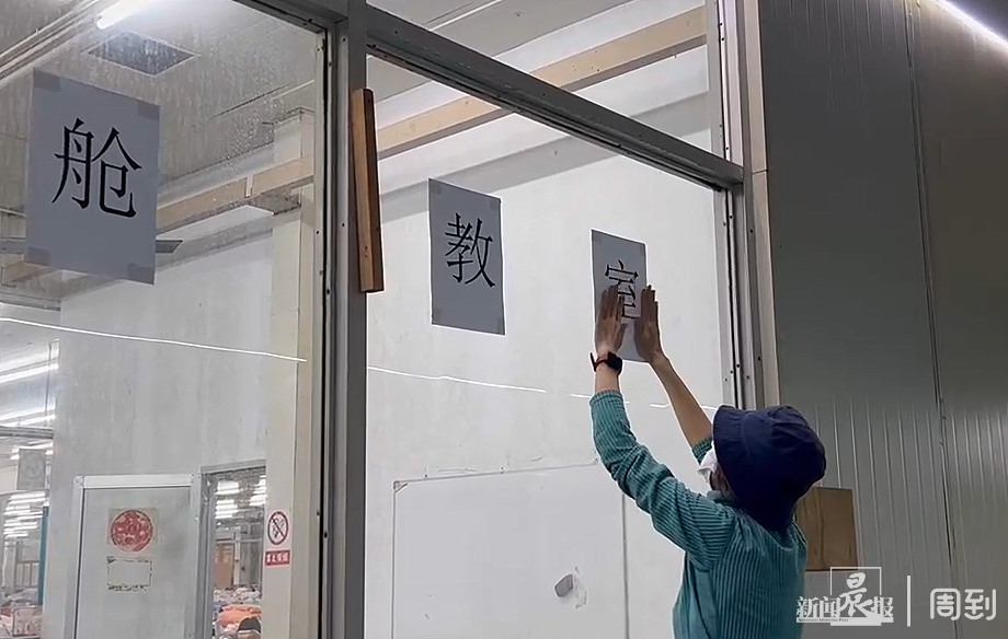 进入方舱,不代表学习暂停。在上海石龙路方舱,就有一间临时“教室”,并且举办了“开学仪式”。
