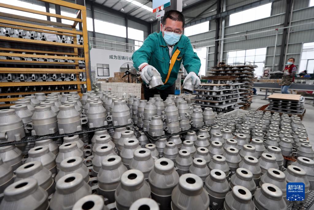 4月18日,工人在安徽全椒经济开发区一铝业企业生产配件。