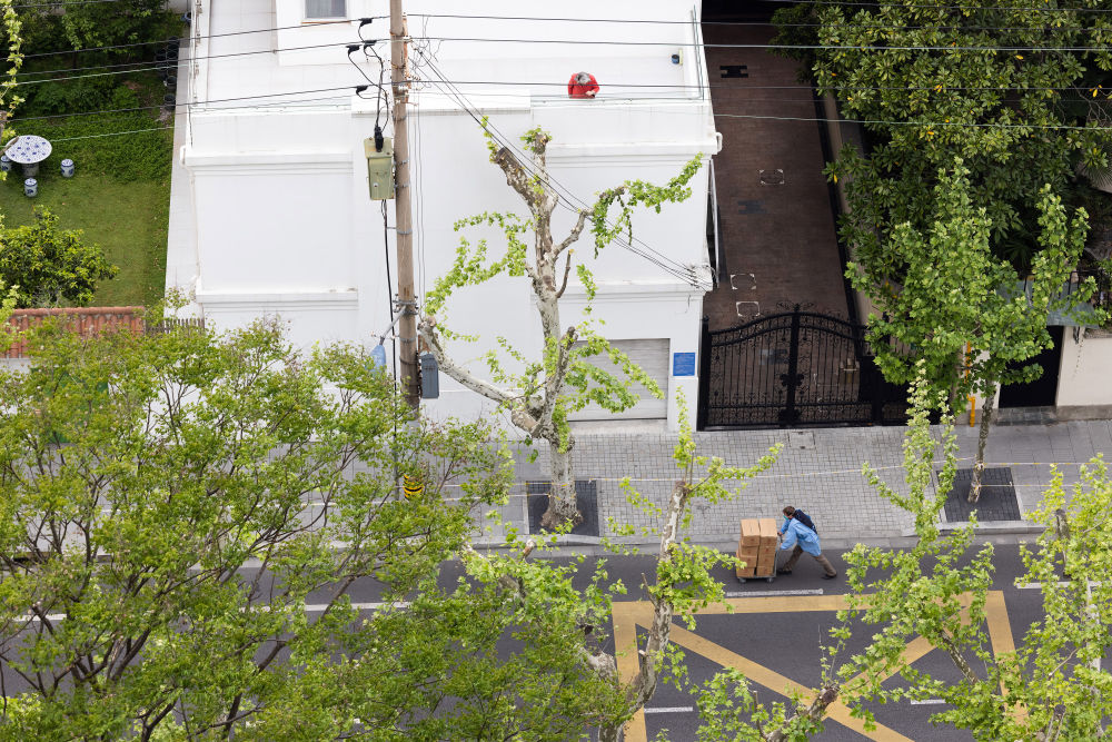 我住在位于浦西的分社招待所。封控前的浦西,紧张中透露着悠闲,街头的咖啡馆,人们还在笃定地晒着太阳,品着咖啡。路过一些水果店或超市,能看到人们穿着睡衣排队在收银台前结账,只是购物箱里的商品就满足平常需求要多一些。