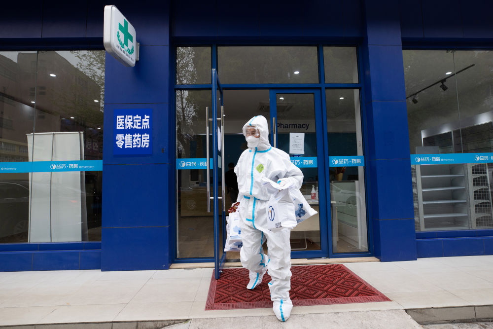 ↑4月5日,送货员叶义飞手拎药品袋走出上药云健康益药药房,前往浦东给下单的客户送药。