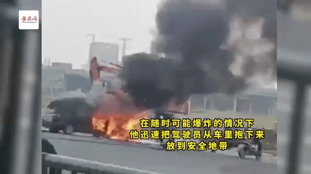两车相撞起火,三人被困车中施救机会就在分秒之间上还是不上?面对爆炸危险他义无反顾