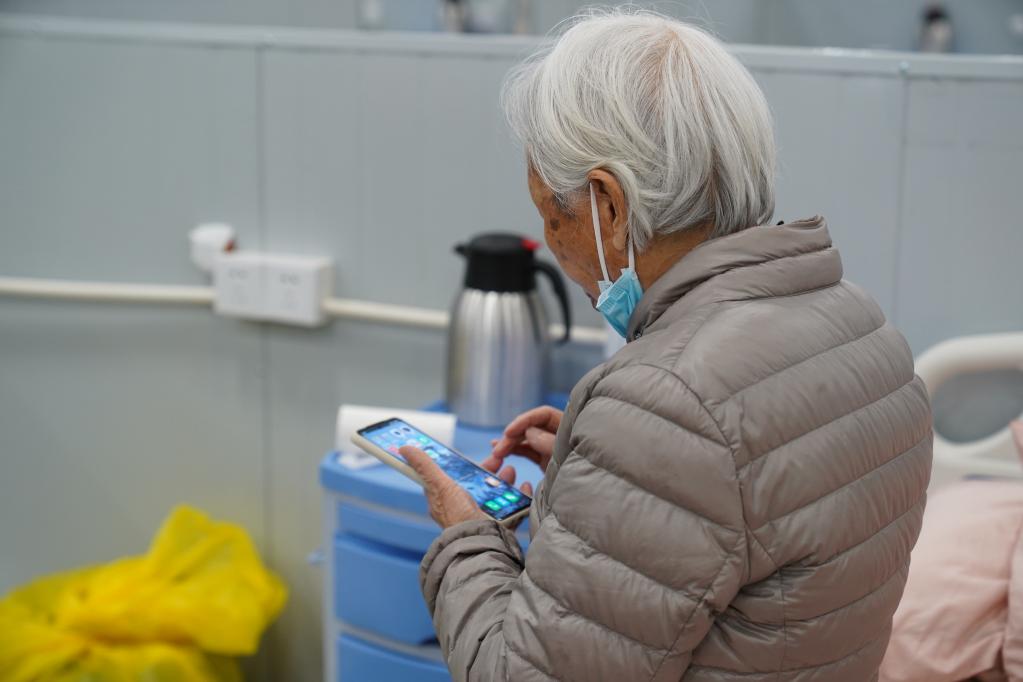 王漫如老人在临港方舱医院休息。新华社记者 杨有宗 摄