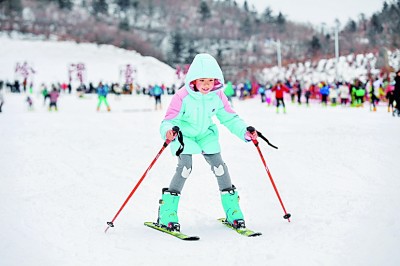冰雪运动爱好者在江西宜春铜鼓县排埠镇的七星岭滑雪场体验滑雪。周亮摄/光明图片
