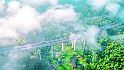 炎汝高速上,车辆穿越湖南省炎陵县鹿原镇泷湖村。唐武摄/光明图片