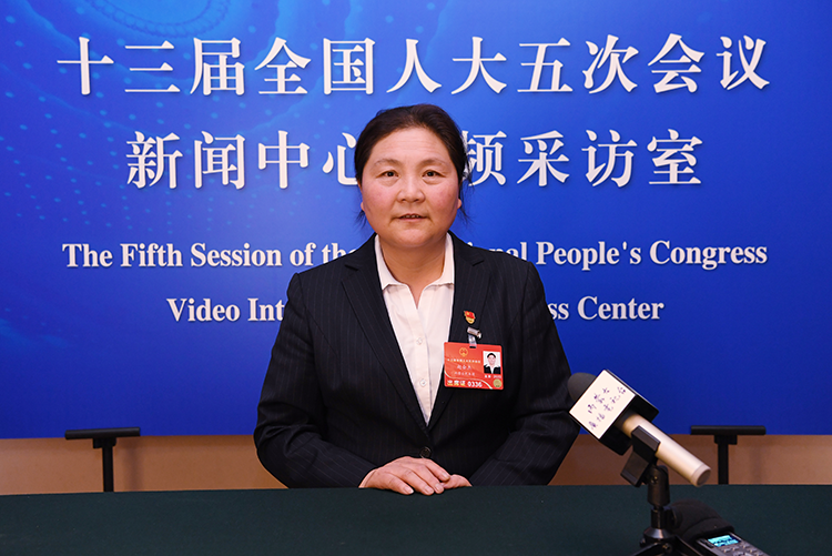 第十三届全国人大代表、内蒙古自治区赤峰市松山区大庙镇小庙子村党支部书记赵会杰在接受记者采访。袁永红 摄