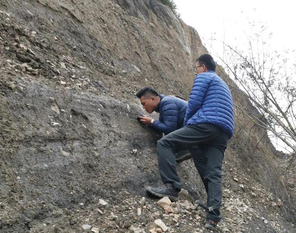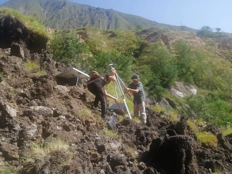 2019年11月,甘肃省自然资源厅地质灾害防治技术指导中心的工作人员在甘南藏族自治州舟曲县东山镇牙豁口滑坡体现场进行调查。(受访者供图)