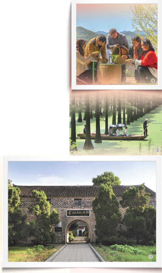 图①:河南省信阳市商城县苏仙石乡,农民向慕名而来的客商展示茶叶。鲍 云摄(人民视觉)图②:湖北省武汉市新洲区,游人乘船从涨渡湖湿地水杉林中穿过。邱新明摄(人民视觉)图③:湖北省孝感市大悟县宣化店纪念馆。这里占地80余亩,建有中原军区旧址景区。大悟县委宣传部供图