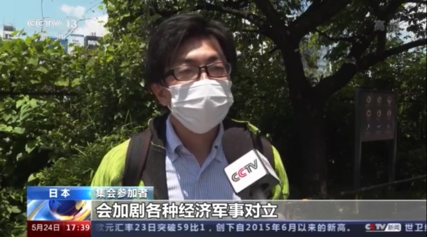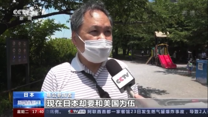集会参加者:在二战之后日本表示不再发动战争,要做和平国家,但是却试图做出违背承诺的行为。现在日本却要和美国为伍,试图成为挑动战争的国家。