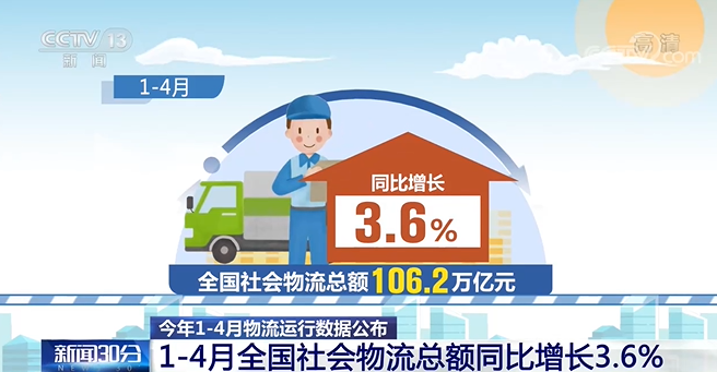 1—4月,全国社会物流总额106.2万亿元,同比增长3.6%。从规模看,社会物流总额超过百万亿元,超大市场规模优势依然较为明显,物流需求依托我国完备的产业体系仍然保持扩张态势。