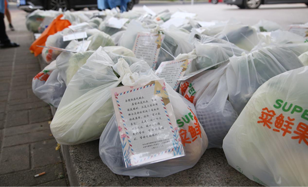 “您好,这是由街道配送的爱心蔬菜包,请查收确认。”5月24日,封控区第一批1500份蔬菜包顺利送达欧陆经典社区万兴苑小区。为了保障蔬菜包第一时间送到居民手中,朝阳区大屯街道立即组织工作人员逐一核对小区居民户数,保证分发工作不落一户、不漏一人。从蔬菜运送到送至封控区域居民手中,“爱心蔬菜包”的旅程,不到24小时。