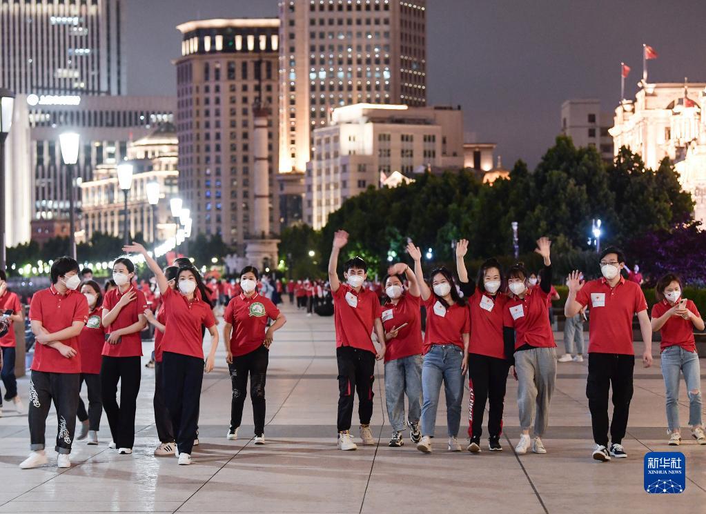 自4月1日起一直封控管理的外滩,特地为陆续撤离的援沪医疗队开放。告别繁重工作、脱下防护服的队员们,此刻像孩子一般高兴。他们欢歌笑语,摆出各种造型拍照,有的还组队跳起了流行的毽子舞……