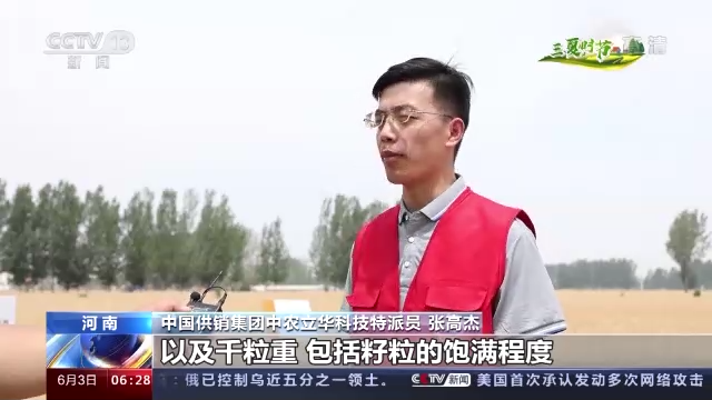 中国供销集团中农立华科技特派员 张高杰:我们这块示范田整个成穗率以及千粒重,包括籽粒的饱满程度,决定了今年的高产稳产,亩增产(增收)能够达到260元左右。