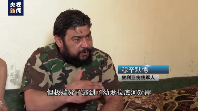 叙利亚伤残军人 穆罕默德:我们当时想继续追击,但极端分子逃到了(幼发拉底)河对岸,有的游泳有的用船,这样我们就没办法继续追了。因为美国在控制河对岸的区域,我们没有得到继续进攻的命令,不然他们(美国)会报复我们。