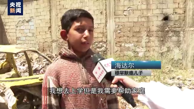 穆罕默德儿子 海达尔:我每天都要工作来帮助我的家庭,我在废墟里捡一些东西卖,每天赚三四千叙利亚镑(约合人民币8至10元),我想去上学但是我需要帮助家庭。