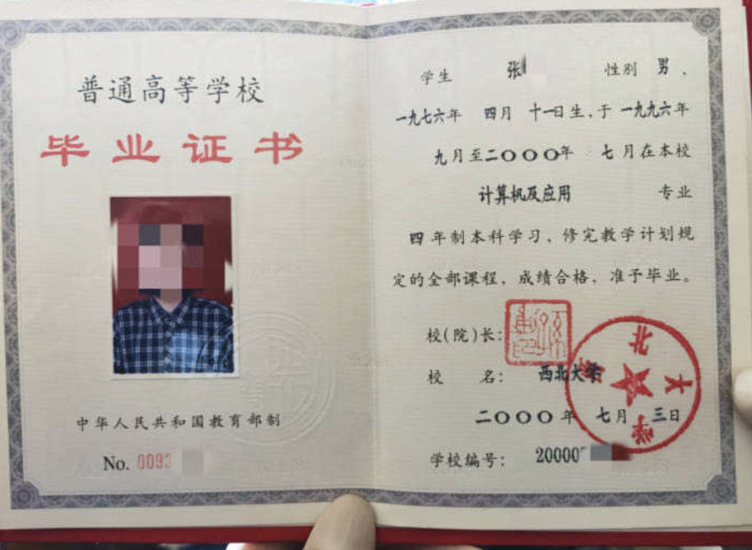 原来,张师傅已经22年没和家人联系了,他自己是山西人,当年上大学时,将户口迁移到了陕西西安。他1976年生,2000年毕业于211大学——西北大学,学的是计算机及应用专业,本科学历。
