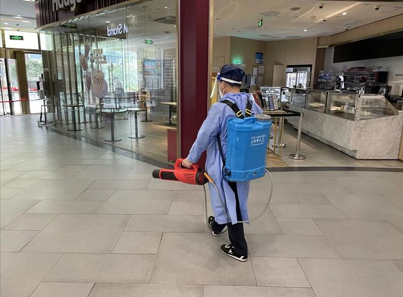 此外,商场开业前还提前引入专业空调清洗消杀单位,逐层对空调系统进行清洗消杀,作业内容涉及空调箱内部风叶、机箱四壁、回风滤网、翅片、积水盘、冷凝水管道、机箱延展出的送回风管、风口等。