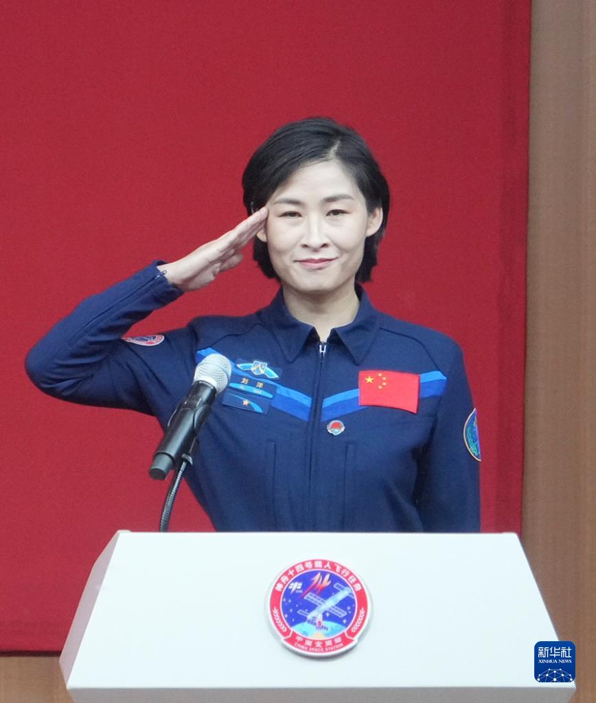 6月4日,航天员刘洋在酒泉卫星发射中心与记者见面。新华社记者 李刚 摄
