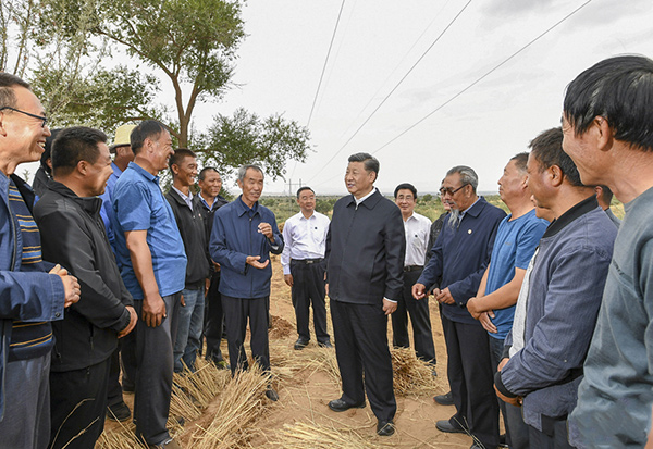 2019年8月21日上午,习近平总书记在甘肃武威市古浪县八步沙林场考察。(新华社发)