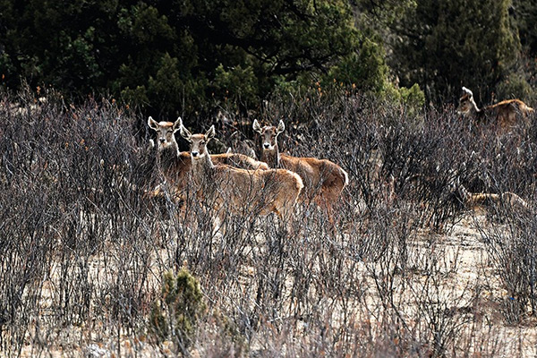 2022年3月24日拍摄的三江源国家公园澜沧江源园区内的野生白唇鹿群。(新华社发)