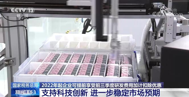 央视网消息:国家税务总局6月9日发布消息,《关于企业预缴申报享受研发费用加计扣除优惠政策有关事项的公告》已印发,明确从2022年起,企业可以在每年10月申报期申报享受前三季度研发费用加计扣除政策优惠,把2021年10月提前享受当年的研发费用加计扣除政策举措转化为制度性规定,进一步稳定市场预期,支持科技创新。