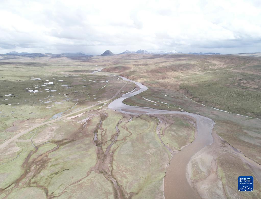 这是6月12日拍摄的长江南源当曲河道(无人机照片)。新华社记者 陈杰 摄