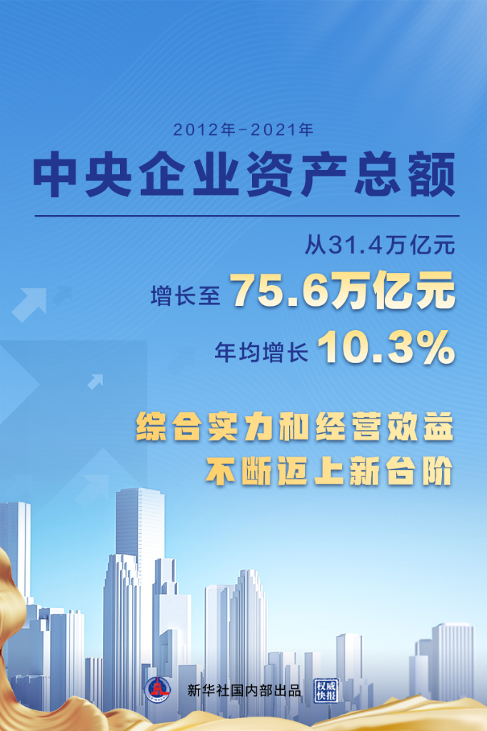中央企业资产总额从2012年底的31.4万亿元增长至2021年底的75.6万亿元