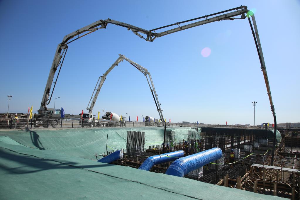 2019年9月22日,土耳其胡努特鲁燃煤电厂项目主厂房浇筑混凝土作业现场。新华社记者郑思远摄