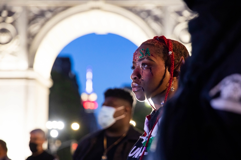 ↑2020年5月29日,在美国纽约,抗议者与警察对峙。明尼苏达州非洲裔男子乔治·弗洛伊德2020年5月遭白人警察暴力执法后窒息死亡,引发全美大规模抗议。