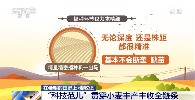 央视网消息:今年小麦实现丰产丰收,科技贡献十分突出。那么麦田里都有哪些高科技呢?接下来我们就通过一个短片,来感受一下小麦从种到收的“科技范儿”。