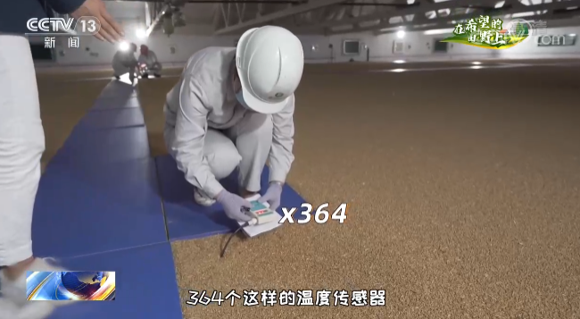 在这里,每一粒小麦都是有生命的、会呼吸的,过热就会发霉生虫。在这个麦堆里面其实埋藏了364个这样的温度传感器,工作人员以此为依据,对小麦进行实时的温度监控,(跟随温度变化)进行补冷。与传统的空调相比,内环流控温系统节约能耗在80%左右,这样一间粮仓一天就可以节约400度电,这相当于一个三口之家两个月的用电量。