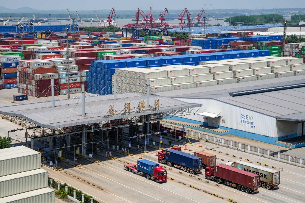 这是5月6日拍摄的江苏省港口集团南京港龙潭集装箱有限公司港口(无人机照片)。新华社记者 李博 摄