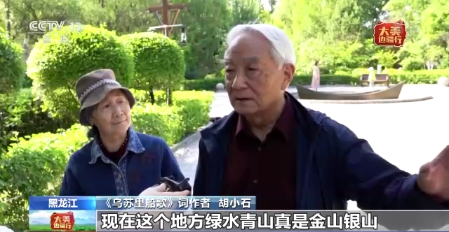 《乌苏里船歌》词作者 胡小石:现在这个地方绿水青山真是金山银山,这个环境也美,人们的居住条件也完全变了。看着就像当年我们写的白桦林里人儿笑,笑开了满山红杜鹃,现在他们的感觉是一种对生活充满了希望,浑身有力量,要往更高的部位去走。