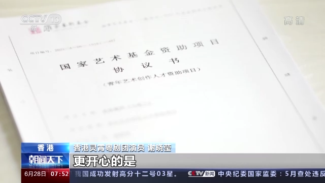 香港灵霄粤剧团演员 谢晓莹:2022年是一个对我来说是很特别的一年,一个我是入行10周年了,然后今年是香港回归25周年,更开心的是,我得到了国家艺术基金的资助。得到了国家艺术基金资助项目这个荣誉,我觉得应该要更努力,要推广这个传统的文化。作为粤剧的艺人,我特别会推荐给大家,去多多看粤剧,了解多一点中国的文化,而我自己也会用我自己的专业,去努力说好中国故事,说好香港故事。