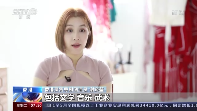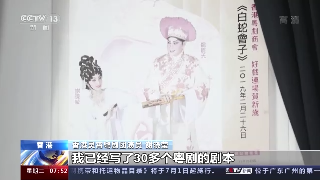 香港灵霄粤剧团演员 谢晓莹:我是从小就特别喜欢粤剧,听见锣鼓的声音我就特别兴奋。在(香港)回归之前,港英(时期)的政府对我们传统戏曲不会有太多的关注。香港回归祖国之后,政府开始给了很多资源去推广粤剧,在学校推广多了很多。