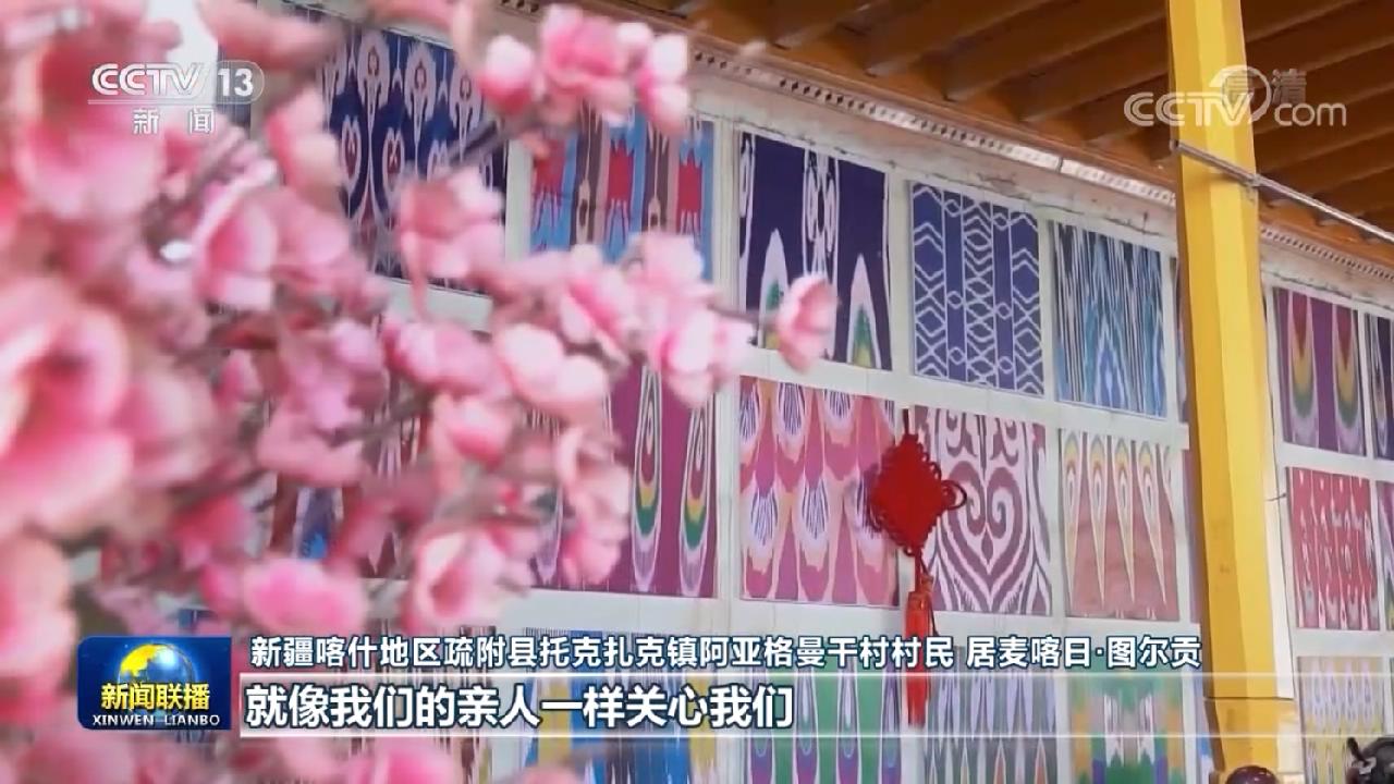 新疆策勒县策勒乡巴什玉吉买村党支部书记 买买提依布热依木·买买提明:我们牢记总书记的嘱托,像爱护自己的眼睛一样爱护民族团结,像珍视自己的生命一样珍视民族团结,像石榴籽那样紧紧抱在一起。现在,我们跟各族干部群众结亲戚结对子,建成了5家民族团结互帮互助企业。