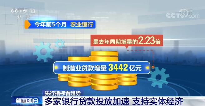 今年前5个月,工商银行制造业贷款的增量是去年同期增量的4.5倍,创历史最高水平。农业银行制造业贷款增量3442亿元,是去年同期增量的2.23倍。