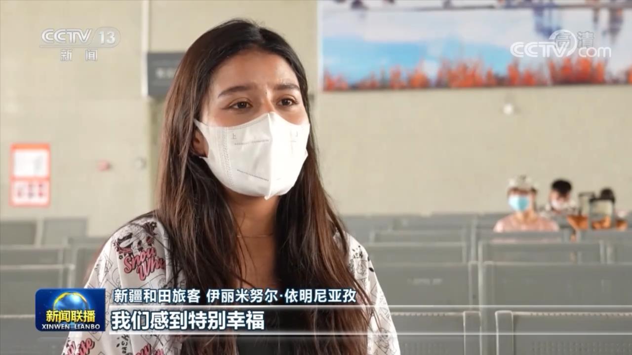新疆和田旅客 伊丽米努尔·依明尼亚孜:我们虽然远在边疆,但是现在火车开到了家门口,生活条件越来越好了。生活在这么伟大的时代,我们感到特别幸福。