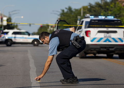 美国芝加哥警察在枪击案现场进行调查。(资料图)