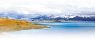 西藏阿里地区拉昂错湖风光。