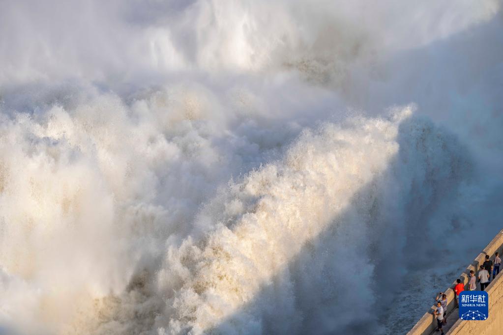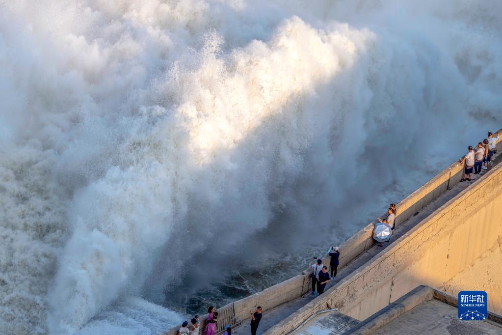 7月4日,游客在三门峡水利枢纽观看调水调沙场景。新华社发(杜杰 摄)