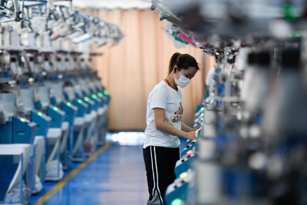 4月21日,工人在浙江诸暨一家袜业有限公司的智能工厂工作。新华社记者 黄宗治 摄