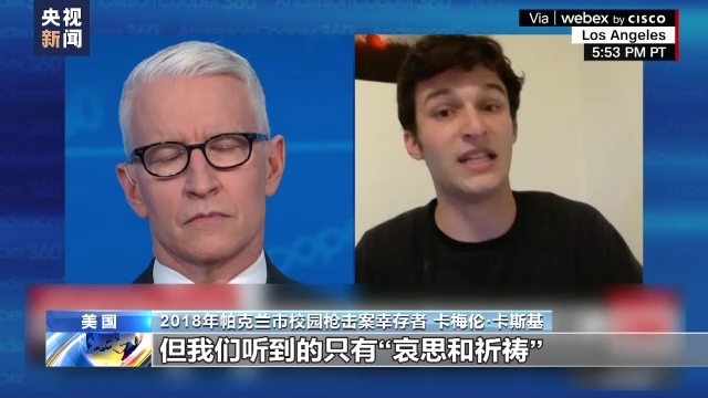 2018年帕克兰市校园枪击案幸存者 卡梅伦·卡斯基:全美的控枪活动人士和相信枪支安全法的人们都等着听到“行政命令”这个词,但我们听到的只有“哀思和祈祷”。