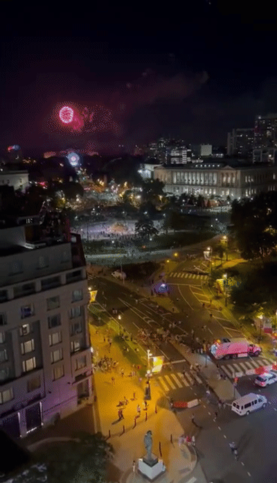 另一段俯瞰现场的视频显示,空中绽放的绚丽烟花之下,很多人正在奔逃,街道转眼间冷清下来,徒留烟花一朵接着一朵继续绽放。