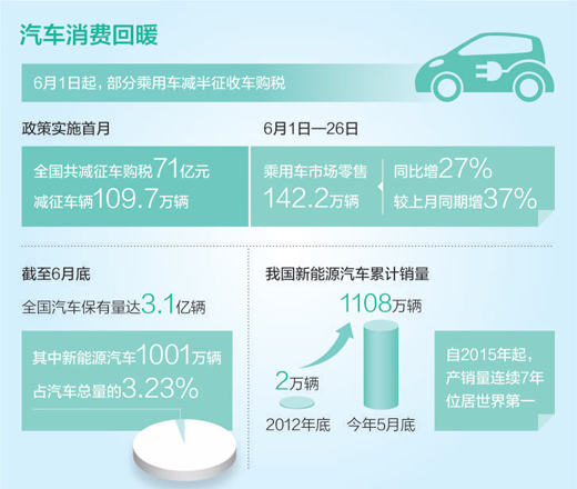 突出促进绿色低碳循环发展。支持新能源汽车购买使用,进一步提高新能源汽车销售占比;支持完善报废机动车回收利用体系,促进资源循环利用,从汽车销售和报废更新前后两端,引导汽车市场加快绿色转型升级。